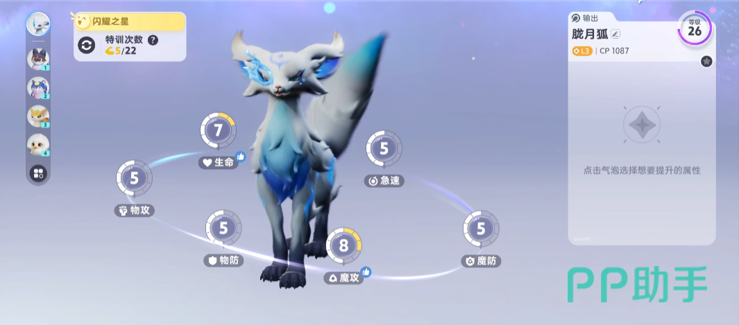 它是暗属性的角色,在将星魔师BOSS击败后,星乐蒂就可进化为该宠物,由于它是暗属性,光暗属性相互克制,作为远程输出角色,对于草王,狼斗士,花舞兰,都能依照属性克制轻松通关,且星乐蒂的捕捉相对简单,建议在早期刷取一只个体值比较高的培养,它的主要属性是魔攻和急速。