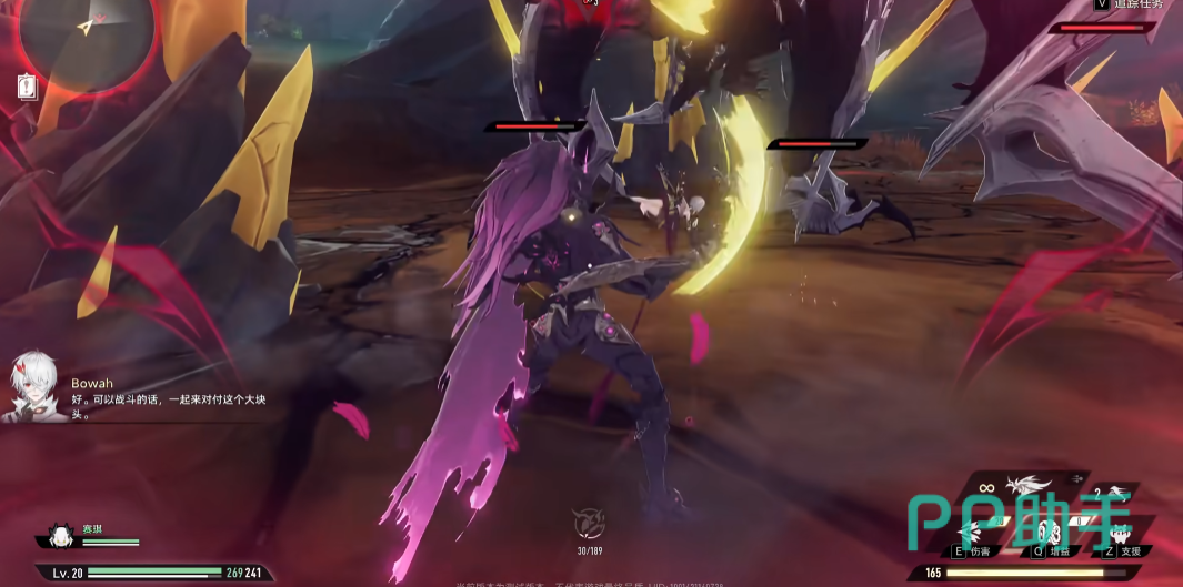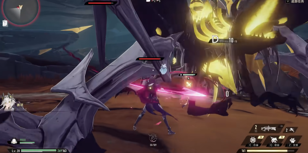 施放“幕启”时,他就会进入到”化身为兽”的状态,该状态的开启要持续消耗神智,武器技能更换为“狂怒的锐爪”、“悲恸的鸣啸”。这两个招式,前者是近战连段的施展,后者是远程的射线;
