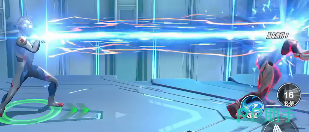 强力型迪迦则偏向近战硬刚路线,攻击段数虽略少但命中效果强劲,技能衔接紧凑。例如“强力手刀”可浮空击飞,“奥特防御”则在格挡成功后提供霸体状态与伤害减免,堪称反打利器。终结技“迪拉修姆光流”以强大热能粒子为核心,爆炸范围广、杀伤力极强。