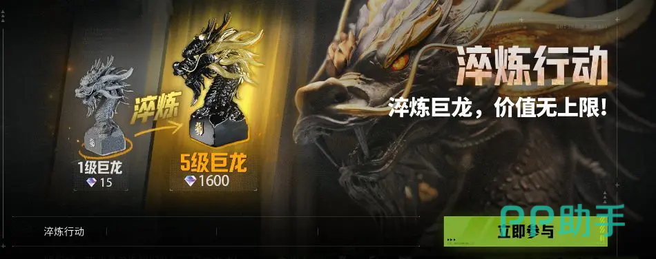 全新解锁两大玩法,首先是镭钻玩法-巨龙淬炼行动上限,这是每周末限定时间开启的,周五到周日的18点到22点可参与,每个玩家都有机会获得大金龙,1*1的原始巨龙就是大家的入场券,可深入战局寻找淬炼装置,进而开出价值无限的至尊巨龙;加入试炼,等于展开全新的冒险。
