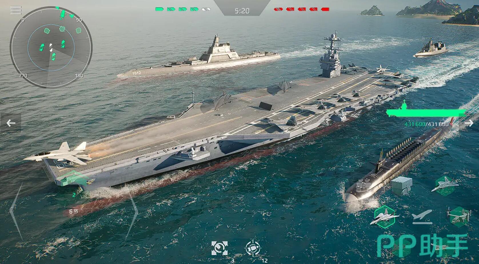 具体操作讲究速战速决。开局全速冲锋,目标优先级锁定驱逐舰>潜艇>巡洋舰。导弹进入冷却立刻切主炮持续输出,防空位也别闲着,手动切换反舰模式打掉骚扰的飞机。一旦屏幕出现爆炸警告符号,马上掉头撤向地图边缘,残血时果断开维修技能保命——活着才能持续赚钱。人机局AI行动模式固定,只要不头铁冲锋基本不会暴毙,稳定每局收割15-20万美金。