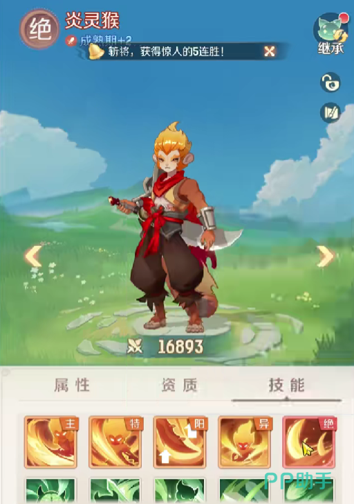 孙悟空:玩家在开局的时候需要选择猴子,因为它作为高爆发的物理输出,拥有较多的技能,喜欢冲锋陷阵。在游戏初期的时候,他比较适合推图,也适合在pvp当中。毕竟孙悟空能够快速地清理怪物,也能够秒杀敌人的核心所在,猴子在游戏当中是比较重要的,因为它所产生的伤害也是特别可观的,玩家如果想要获得孙悟空的话需要通过神兽礼包或者是特定的活动。