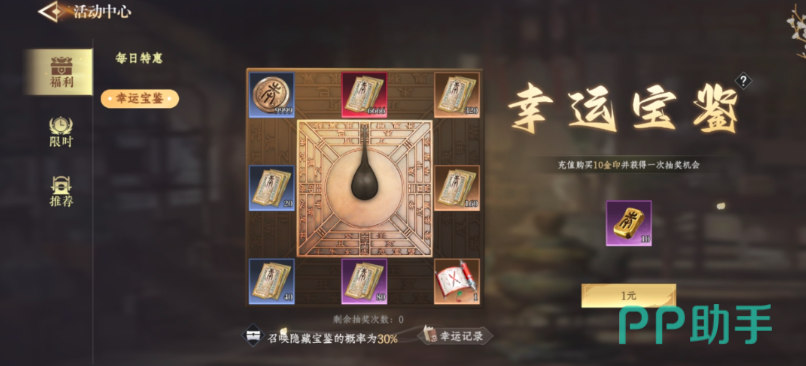 在游戏当中幸运宝鉴,算是一个价格非常低廉的小氪金活动,其价格在1RMB,对一些小氪的玩家来说,轻轻松松拿下绝不是问题,而且拿下这个小氪活动,比较有利于玩家对月卡的领取,月卡合成游戏当中的宝钞需要90个,而合成RMB的话大约需要8r,通过幸运鉴宝玩家大概花费两个小时,就能够快速拿到月卡,但如果玩家先拿到幸运宝鉴,仅仅需要几分钟就可以快速抽取到20~80个宝钞,就能够帮助玩家节约很多的时间。