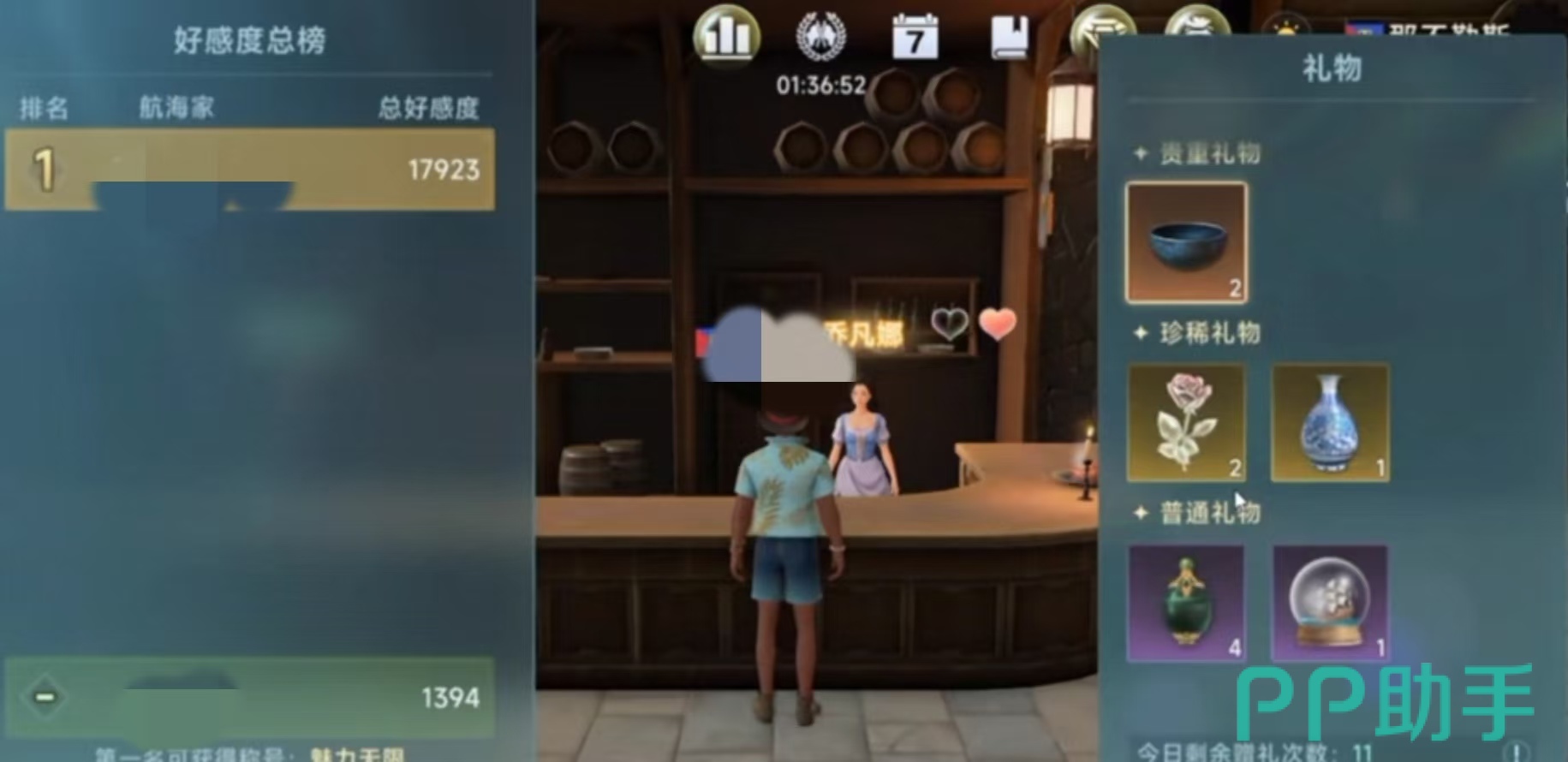 送礼物也是有一些小技巧的,每个航海士或者酒吧女性都对礼物有一定偏好,需要投其所好,才能发挥礼物的最大价值,比如喜爱美食的航海士,可以送他们美味的海鲜料理、可口的水果蛋糕;喜爱美酒的航海士,可以送葡萄酒、朗姆酒;对饰品情有独钟的,贝壳项链、珊瑚耳环是不错选择。热爱书籍的,可送古老航海日志、海洋文化典籍,游戏中各大酒吧的女性对礼物要求也是不一样的,比如伦敦的酒吧女安吉拉更喜欢玫瑰精油,送给她们能获得如藏宝图、挑战劵之类的丰厚奖励。