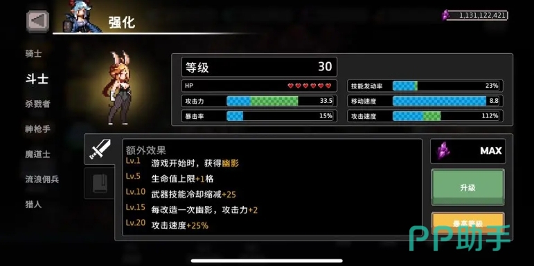 战斗过程中特别留意BOSS房前的广告提示,尤其是关于紫晶石的宣传,提前准备一些广告券可以在商店快速跳过无关广告直取所需物品,当完成第一局游戏后,上述大部分圣器应该已经顺利解锁,此时转而关注第二批待解锁的内容,再次回到解锁页面查看技能列表,回顾先前在商店购买的角色组合,杀戮者必买,猎人与浪人二选一,此时便可利用之前通过观看广告积累的紫晶石对这些角色进行升级。