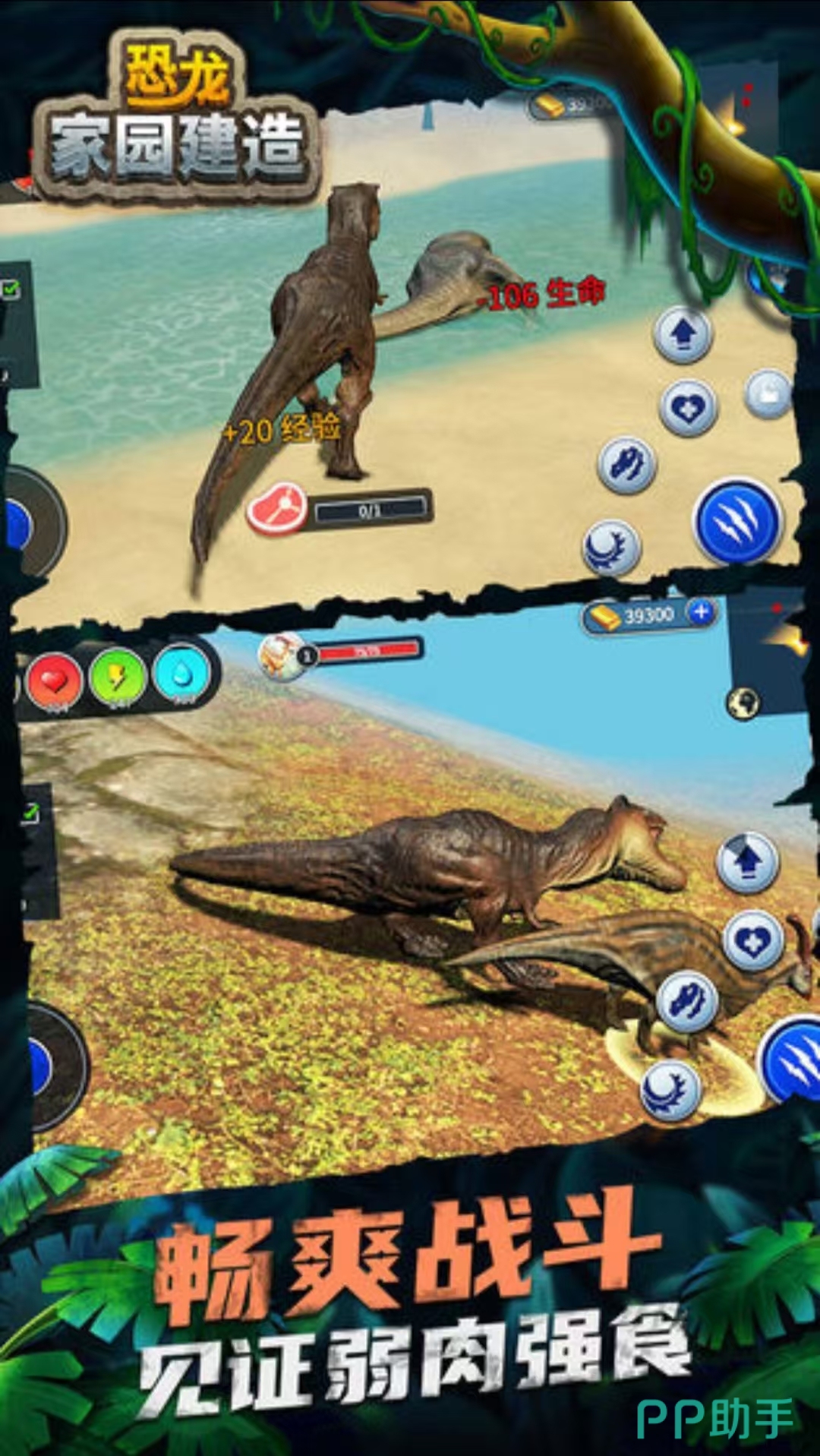 玩家将作为一个猎杀恐龙的雇佣兵,每天和恐龙打交道。身在侏罗纪恐龙遍布的危险世界,玩家要战胜恐龙,发动狩猎能力,以各种手段征服恐龙,建立自己的岛上家园,成为一个优秀的野兽猎人。现实战斗3d模拟游戏,各种武器道具可以拿来和恐龙战斗,当恐龙倒下的那一刻,成就感满满。