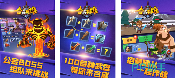 合成英雄是款拥有特殊合成元素的角色扮演游戏,你可以合成各种各样的英雄和武器执行任务,特殊的冒险元素跟BOSS挑战玩法互动性更强,甚至加入了组队打boss的联机互动玩法更显刺激,招募随从辅助战斗的理念带来更爽的刺激感,百余种武器等待着玩家合成并展现出更高的威力。