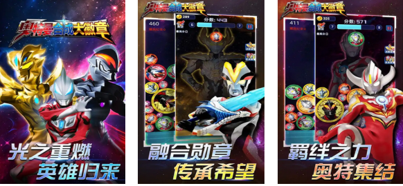 这款奥特曼主题的徽章合成类游戏辨识度还是很高的,具备下落式合成机制和特殊的徽章合成元素,每个徽章上都刻画着特殊的奥特曼头像相当逼真,相同的徽章可以进行触碰合成玩起来更具代入感,还设有特殊的羁绊之力系统等待奥特曼粉丝参与,合成特效完善且具备浓郁的奥特曼主题元素。