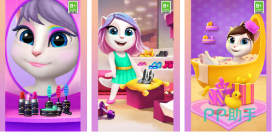 与我的汤姆猫整体玩法大致相同,小伙伴们将养成非常可爱的安吉拉,通过喂食清洁互动等多种方式培养感情,另外也能够打造出非常漂亮的装扮,比如妆容的选择,发型的设计又或者是服装的搭配等等。可以给安吉拉自由布置房间,通过收集特殊贴纸来解锁更多的家具以及装饰品,打造具有温度的小窝。