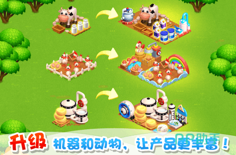 这款以欧美风设计的小镇农场主题手游,玩家们可在异国他乡享受多元化建设玩法。系统以Q版卡通画面打造了小镇社区和海岛区域,玩家可以体验完整的农场操作生涯,无论种植经济作物还是打造肉类产品生产链,都能获取不同的利益。本手游除了基础产品加工外,支持对大型设备和动物进行属性升级,不断输出更加优质的经济品类。
