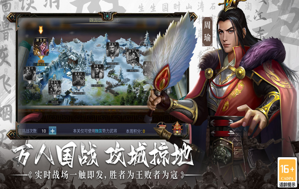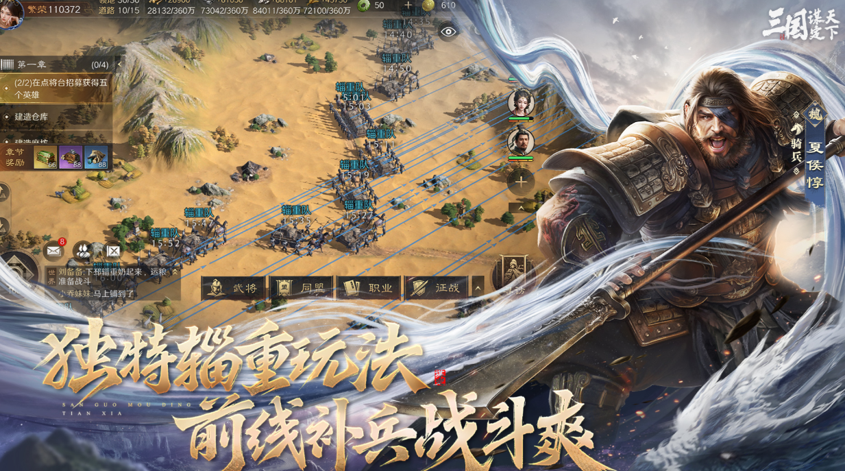 三国:谋定天下是款职业、兵种都很多的真实国战类游戏,具备特殊的俯视角以及六大职业的辅助,宏大写实的沙盘能让玩家看到战场中的变换,灵活搭配战术、地形进行策略战斗任务可玩性拉满,超爽的国战画面带来了震撼的视觉效果,全新且独特的前线养成军队的玩法则让代入感大大提升。