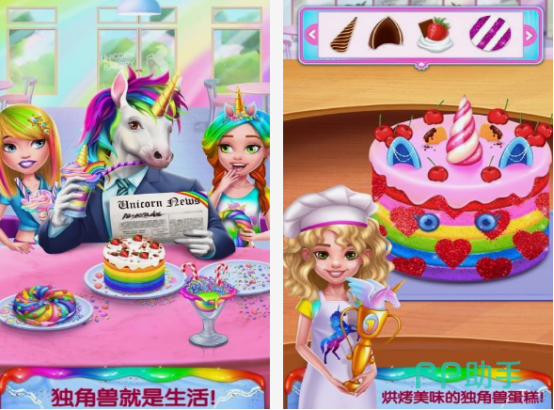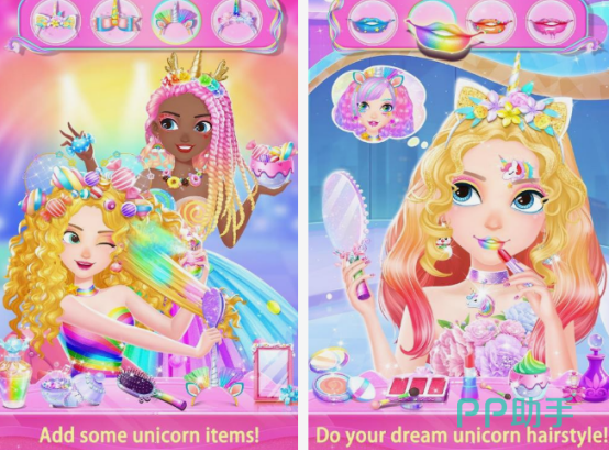 能制作出以独角兽食物为主的此休闲手游,具有时尚的设计风格,以及超多与众不同的食物。你将成为专业的造型师,其中就包括支持使用相应的工具,以及食材,制作美味的独角兽蛋糕,也支持通过彩虹服装以及独角兽的发型等,打造出专属的人物形象。整体的颜色以及风格,就是融入了独角兽这种与众不同的角色进行设计,每个年龄段的玩家,都能轻松上手。