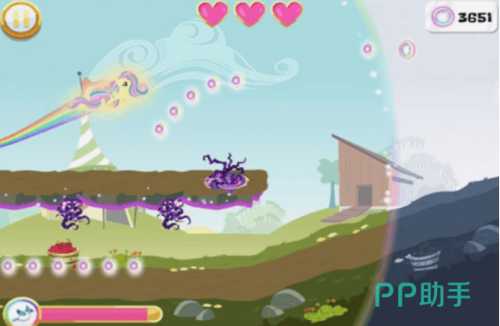 你将化身为游戏当中的小马宝莉彩虹跑将,置身于以彩虹背景为主的游戏世界中以后,一开始的颜色是以灰白色为主,给人的感觉特别的单调,没有任何的色彩,但是却能通过小马宝莉,不断的奔跑跳跃,使整个世界拥有着丰富多彩的颜色,也能唤醒小马儿所具备的彩虹能量。有扣人心弦的冒险之旅,在每次玩的过程中,都要使用各种动作躲避障碍。