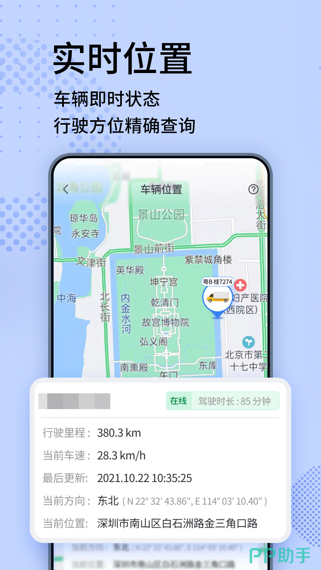 该应用可作为卡车司机专用的行驶行为和货车定位工具,在软件中集中了众多实用的功能呢,比如行驶轨迹回放,通过该功能可以了解车辆在过去的几天所行驶的路程,道路状况,平均速度等,还可以设置停车时间,方便卡车司机们在特定停车场超时而需要支付额外的费用。该app不需要增加其他设备,直接在手机里面安装即可,所使用的定位卫星有GPS和北斗等,精度高,延迟低。