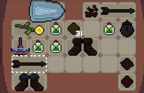 火焰箭/毒箭适合持久战,其特性是右侧每空一格叠加2层中毒(上限10层)。布局时需横向扩展背包,确保毒箭右侧留出3格以上空位。左侧放置盾牌可激活盾之精灵(每面盾牌+3毒伤),三毒箭配双盾精灵的阵容,每回合稳定造成30点毒素伤害。遇到高血量BOSS前使用倍化毒药,单回合毒伤可爆发至50点。