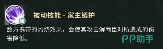 即使是面对拥有血盾的敌人,也能造成更为可观的伤害输出,余温技能更是展现了他不错的团队辅助能力,当己方累积施加一定层数的灼烧时,他能够及时回复自身生命值,并同时对敌人额外添加一次灼烧效果,他的怒气技是群体能力,能够一次性对多个目标造成可观的输出伤害,被动技能也附带灼烧效果,实现持续输出。