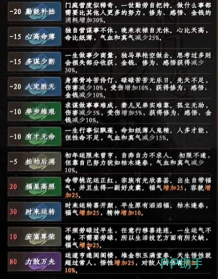 再者那些能够提升福气与容貌的天赋同样不容小觑,它们在角色的成长历程当中,无论是触发隐藏剧情还是结交奇人异士都将更加顺利,此外还有诸多其他类型的天赋可供探索,如增强悟性、磨砺精神等,皆可依据个人喜好与玩法风格灵活搭配,这里其实深入剖析各项关键属性的时候,大家不难发现其中的奥妙所在,以筋骨为例,它直接关联到外功攻击与要害攻击强度,每增加一点便能使外功攻击增长5点、要害攻击提升1点。