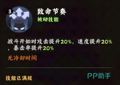 倘若他是全场速度最高的忍者,那么在释放必杀技后还有50%的概率再次释放必杀技,这一机制不仅鼓励玩家注重速度属性的培养,还为佐助提供了额外的爆发机会,使他在关键时刻能够打出更高的伤害,同样该技能也没有冷却时间,还有被动技能致命节奏,战斗一开始便能为佐助带来全面的属性加成,攻击提升20%、速度提升20%、暴击率提升20%,这些属性的提升让他在战斗初期就具备强大的竞争力,无论是抢先手还是输出伤害都能占据优势。