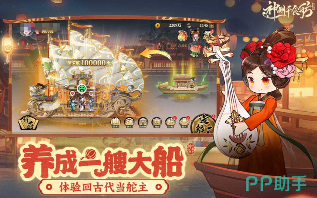 神州千食舫是款拥有古代风格的模拟经营类游戏,全中式风格的背景和佛系养成的理念让本作更具人气,穿越到古代当老板的游戏体验爽到飞起,新注册账号的新人登录送百连抽以及SS角色,豪华的特效和背景渲染技术给人视觉上的享受,操作流程完善且规则系统很好掌握让大家心驰神往,你也进入神秘的神州千食舫尝试当老板吧。