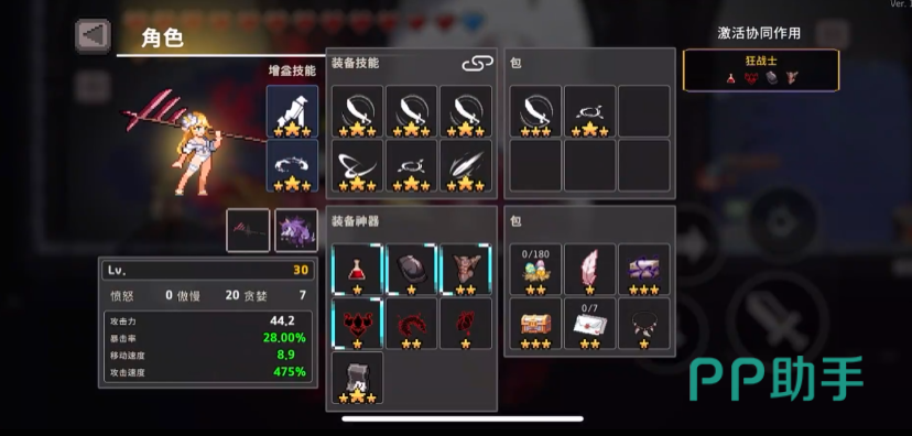 3技能”血狂”,当角色生命值小于15格,就会进入血狂状态,此时怒气值得到全面提升,使用武器技能,或者进行冲刺,都能获得独特的旋风鲜血旋涡。在角色等级不断提升中,他的伤害效果也会全面提升。可搭配合适的武器,比如迪亚布洛,伤害比较可观,还具备追踪剑气的能力,能打出爆炸的输出效果。