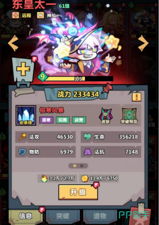 最后为小伙伴们推荐的就是挂机扫荡队,由于游戏加入了挂机模式,但是大家并不了解怎样的配对阵容,才适合挂机特点。具体的配置为东皇太一以及观音,之后再搭配双眼皮输出角色,比如三足金鸟。其中东皇太一具有自动加钱的功能,而观音光环增益效果。我东皇太一开局必选每秒金币收益都能够全面提升推图的效率,非常适合资源匮乏的情况下挂机积攒更多的资源金币。