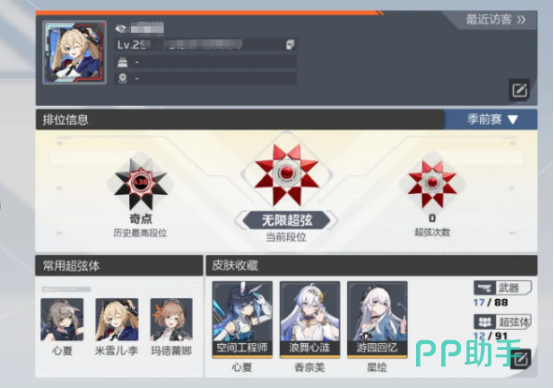 其次也可多参与高端局,在这样的对决当中拥有着极大的难度玩家可以寻找实力相当的队友,在组队之后参与到对局当中,确保队伍的整体实力相当,这样也有机会快速上分。只是要注意的是,当达到相应的段位之后,没有办法组合队伍参加比赛,此时只能选择单人匹配,甚至也无法进入无限超弦段位。另外玩家要注意的是,如果7天内没有参加排位赛,那么就会扣除一颗星,因此需要保持极高的活跃度。