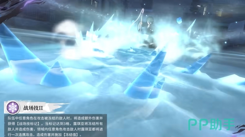 战技2则将团队协作的优势发挥出来,队伍中的任意队友只要攻击的目标身上原来有冻结效果在生效,那么收到的这一次攻击还有额外的数值增加百分比,且输出后还会继续给该目标进行标记,这个标记就类似于累计的负面效果,随着战斗的持续进行当标记累计达到3格时,她会直接施展强大的魔法力量,将所有的敌人都冻结起来,而在她所创造的这片冰雪领域中,任意的队友发动攻击时,她都能迅速做出反应,进行一次连携攻击,攻击过后,还会继续为敌人添加冻结值,所以从这里大家就可以看出来其实朽木露琪亚的对战当中这个冻结设定才是最重要的。