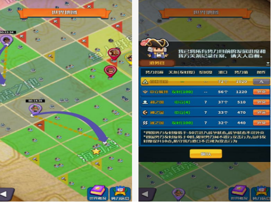 此休闲类型的,可让玩家进入了以航海这样的环境中,由于分为两股势力,不断的崛起。所以纷纷派出了远征舰队,希望能通过与敌方执行的较量,来拥有更大的势力。其中的神秘海域,每个玩家都能在海上乐园当中,展现出自己勇敢的一面,并采用的是特别可爱,又卡通的风格进行,你在玩的时候要仔细的观察,利用获得的各种资源以后,扩充实力。