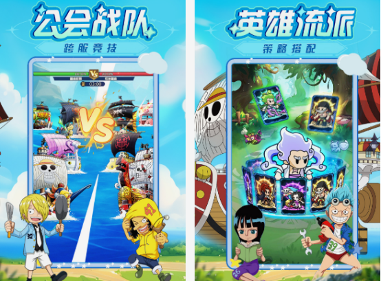 以航海王系列为大家所推出,采用q版的风格所设计的人物,通过对角色进行收集养成,在航海之路当中进行探索。完全颠覆了,大家比较熟悉的传统卡牌玩法,而是能在展开跨服gd的过程当中,通过公会战队的方式,加入到与敌方的较量中。有超多的英雄流派,利用策略搭配的方法,展现出强大的战斗实力。全凭技能享受刷怪割草般的快乐,还有非常唯美的人物以及场景。