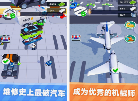 同样也是以经营修理店为主要玩法,你将置身于拥有着很多汽车,以及零件、工具的修理厂环境当中,无论是轮胎出现了问题,需要及时的更换,或者是对其他的零配件进行更换,以及车子外观涂装等,都可以使原本破旧不堪的汽车焕然一新。在玩法内容上非常的丰富,比如在选轮胎的时候,就有很多的类型,要根据车子正确挑选,有机会成为优秀的机械师,甚至修理飞机这些交通工具。