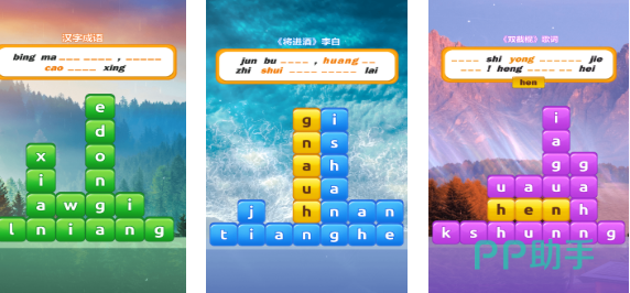 这是款很容易让玩家上手挑战的儿童向益智类游戏,加入了大量有用学习理念和丰富的场景设计,使用高互动性的玩法让玩家跟拼音字母进行互动,轻松上手的玩法跟有趣的气氛营造都是亮点,合成汉字的基础游戏设定加强了孩子对汉字的认知,三维卡通的背景塑造亲和力不用多说,超前的拼音解谜玩法设定互动性直线飙升。