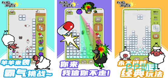将羊的题材以及传统的俄罗斯方块玩法结合在一起,在这里呈现出来的画面非常简约,将会看到各种各样的方块,而玩家需要通过合理滑动的方式完成相应的砸羊任务。这里有多样化的羊类品种,比如有特别普通的小白羊以及披着羊皮的羊等等,每一种羊的智力所在是完全不同的。在原有的基础之上游戏还融入了全新的小羊躲猫猫模式,您可以在这里也放松心情。