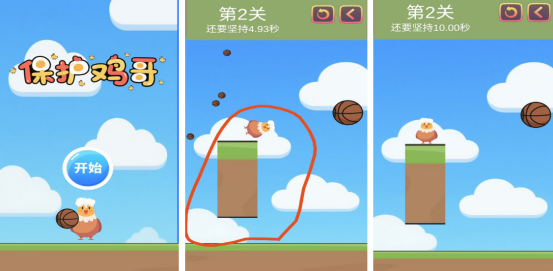 以可爱的小鸡为主要题材,这款游戏的画面清新又简约,操作方式也特别简单。开局后将会看到一只可爱的小鸡在高台当中站立,而从天也会不断降落出不同的篮球,您需要通过划线的方式想方设法保护好小鸡,不要被篮球所打中。