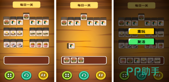 以消除为主要的核心,以各种美食作为主要的题材,开局后将会看到各种色彩缤纷的美食,比如有汉堡以及寿司等等,这些美食都是以层层叠加的方式进行展现,玩家要想方设法将相同的食材放在下方的空白栏当中,只要有三个相同的美食之后就可以快速消除。玩家可通过消除美食的方式来完成菜谱任务,解锁更多全新的料理模式。