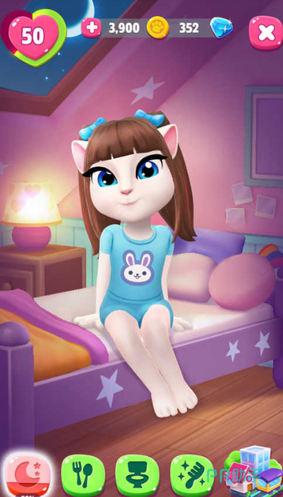 你将成为一只可爱小猫的贴心管家,通过日常互动培养责任感——从梳理毛发到准备精致餐点,从时尚穿搭到家居布置,每个细节都充满惊喜。游戏创新的"情绪反馈系统"让安吉拉的表情随互动实时变化:享受泡泡浴时会开心转圈,肚子饿时会委屈地蹭着你的手指。特别设计的睡眠模式将星空搬进卧室,当安眠曲响起,安吉拉就会乖乖上床,帮助小朋友理解健康的作息规律,在游戏中学习生活常识。