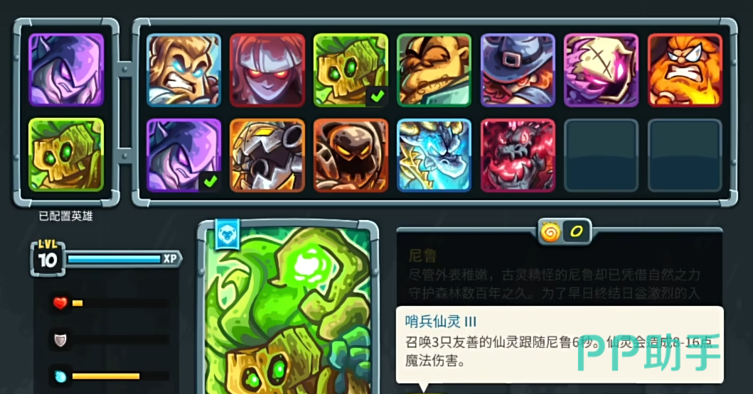 尼鲁是一个法坦,外表稚嫩的他,靠着自然之力已经守护森林数百年,他的“哨兵”会召唤出三只友善的仙灵,跟随自己6秒的时间,仙灵会造8到16点的法术伤害,他的“翠绿”会向敌人发射出一束绿色的能量,造成360点魔法伤害,他的“叶片旋风”会在战斗时,在自己的周围创造出一个树叶护盾,护盾会每秒自动造成法伤,并治疗自身存在时间为8秒,他的“衰弱咒语”会对区域内所有的敌人施咒,降低他们90%攻击伤害持续8秒,他的大招会在一定范围内生成树根7秒,在范围内的敌人会被减速,并且每秒受到27到44点的真伤。