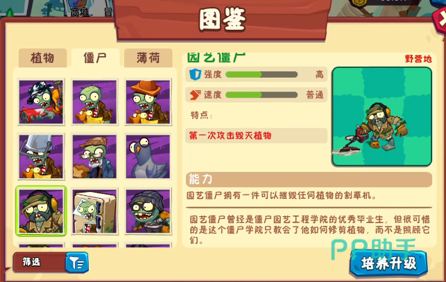 它浑身好似穿着护甲,同时手中还拿着割草机,通过割草机第一次攻击,能摧毁任何植物。