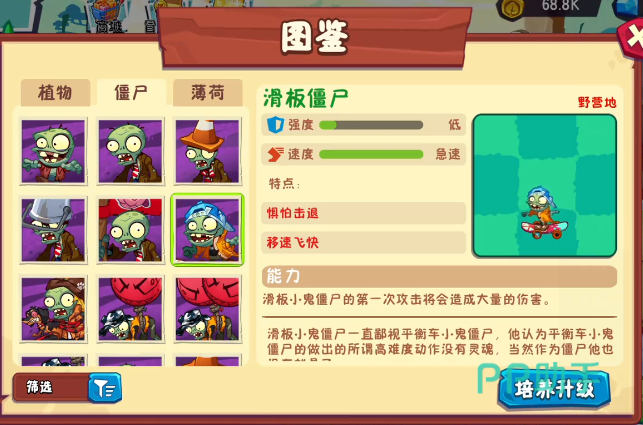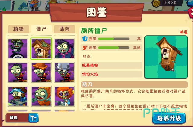 强度在中等水平,速度普通,它带着一个路障作为防具,比普通的更为强壮,头上顶着个路障,实际上它只是想找个遮阳帽,谁知道僵尸是不是怕晒黑呢。