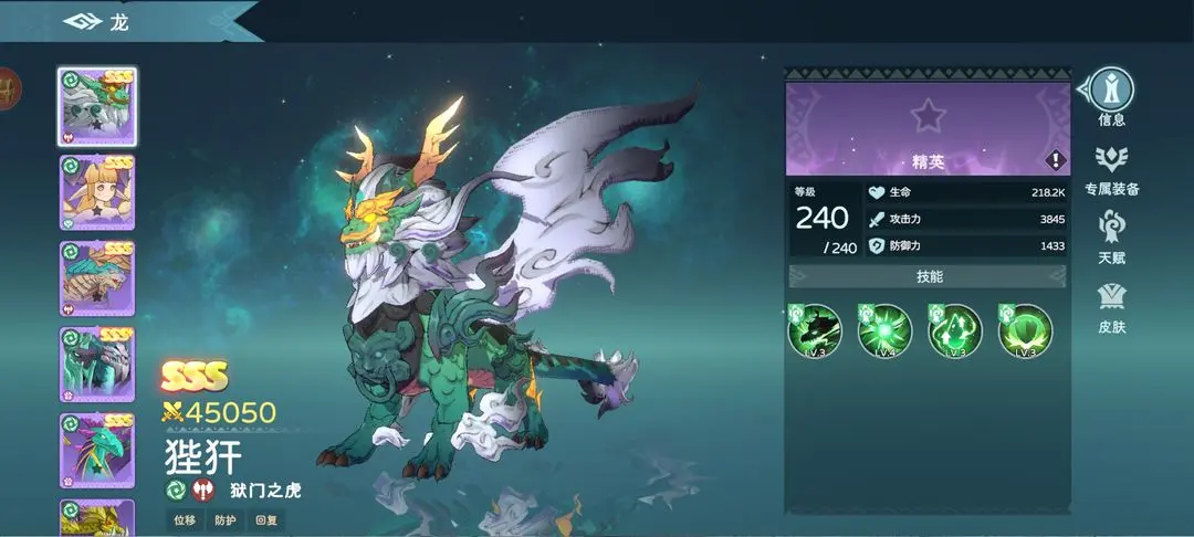 遇见龙2狴犴怎么样?狴犴的别名叫做宪章,是中华古代神话里的深受,也是传说龙的第七个孩子,看起来十分的具有威力,在游戏里它也是SSS的品质,定位是一只勇猛龙,坦度和伤害都非常不错,可能很多玩家朋友对该龙的实力了解不多,接下来就详细分析下该角色的技能强度。
