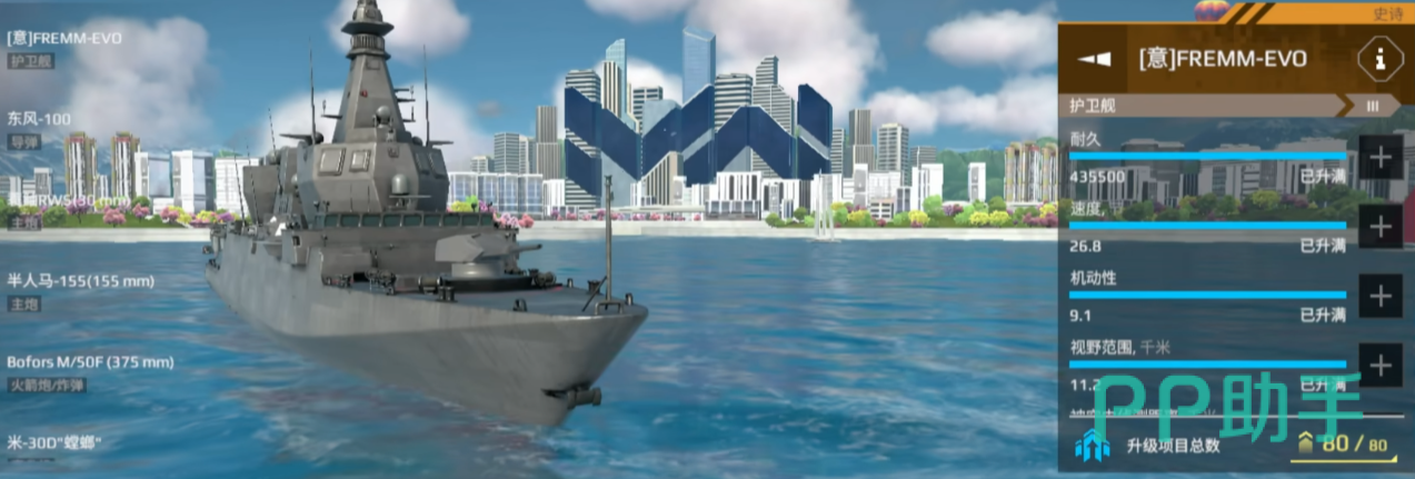 超级电动轮椅船,隐蔽性出众,移动速度和开火状态下也难以被点亮。最值得称道的它的火力系统,两枚自由导弹可适配红旗26,两门自由主炮适配等离子炮,配合极短CD高爆发的火箭炮,加上自动攻击水下目标与鱼雷的自动炮,使EVO成为全场景制霸的怪物。单轮爆发可比肩驱逐舰乃至巡洋舰,而且精准度极高,远程也能稳定输出。
