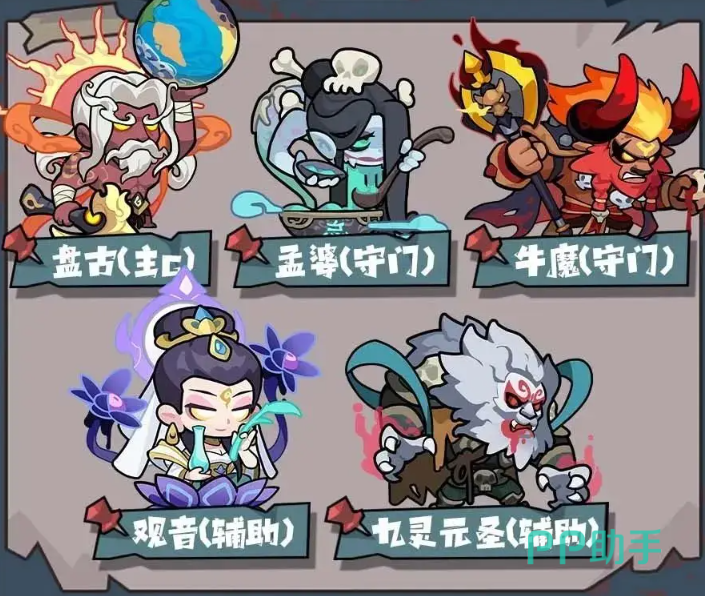 队伍中另两个关键的守门角色是【孟婆】与【牛魔王】,前者稳定回血为盘古持续作战创造条件,后者以击退控制与高抗性守住前线,确保主C有稳定输出环境。辅助方面则建议搭配【九灵元圣】与【观音】,两者分别在控制与增益续航方面提供强力支援。九灵的破甲与晕眩效果能为盘古制造连招输出的空间,而观音的怒气回复与全队治疗能在拉锯战中稳定队伍节奏,特别是她的暴击增益搭配高频物理输出角色格外出色。