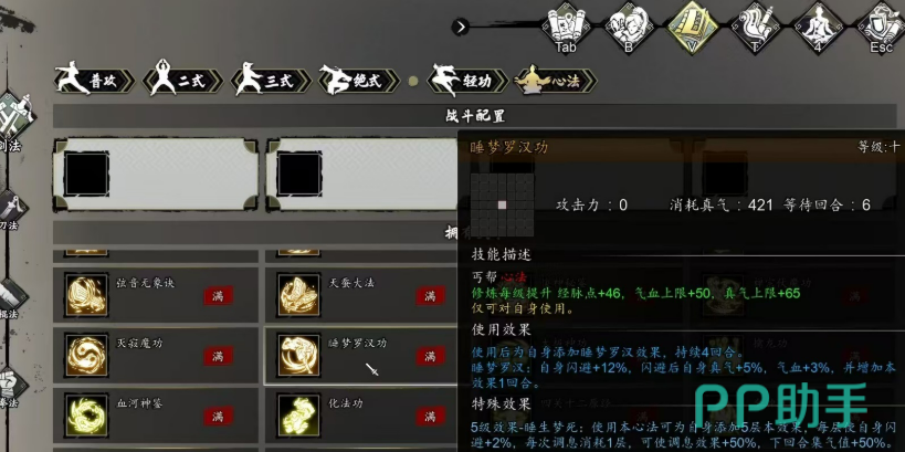 在搭配方面,四象无极功与其他心法的结合,更是事半功倍。比如,配合五灵心经、易筋经和混元神功,可以构建出一个既具增伤效果又兼顾生存的高性价比组合。混元神功能进一步增强四象无极功的输出威力,易筋经则提供了稳定的生存保障,而五灵心经则能帮助角色回复气血和真气,让战斗更具持续性。这一套搭配,不论是剑系还是刀系玩家,都会觉得如鱼得水。当然,如果你喜欢更加稳健的玩法,还可以考虑与睡梦罗汉配合,利用睡梦罗汉的闪避和回血效果,再加上易筋经的防御力,让角色在输出的同时,能更好地保证生存。