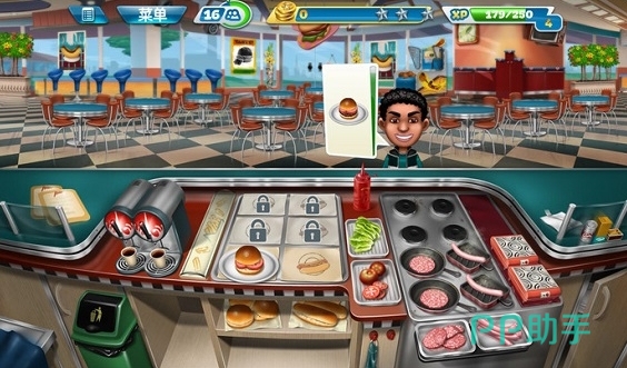 游戏在呈现形式上采用鲜明的欧美卡通风格,画面色彩明快,食物造型细节丰富,不同餐厅场景的装饰元素贴合其主题定位,营造出各具特色的用餐氛围,操作方式以点触交互为主,界面设计简洁直观,新手玩家能快速掌握基础操作逻辑,降低入门门槛,背景音乐采用轻松明快的旋律,与烹饪场景形成氛围呼应,增强了游戏的沉浸感。