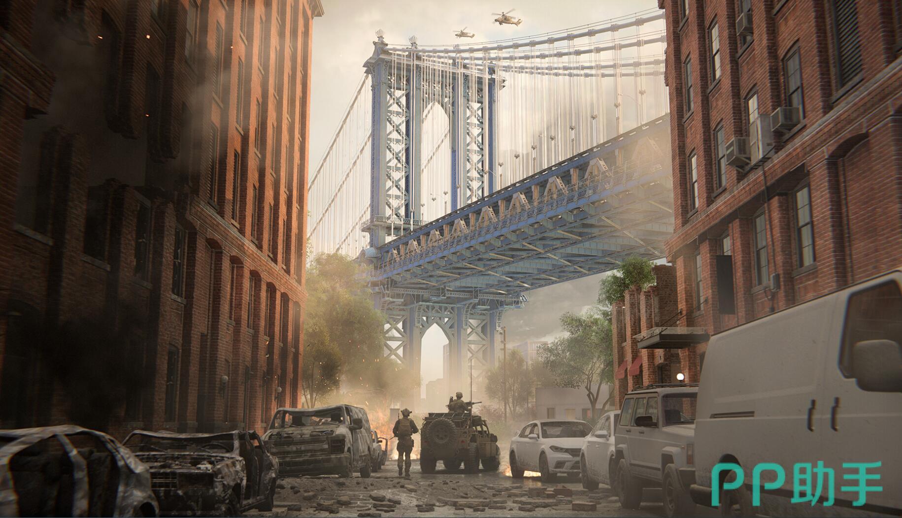 曼哈顿大桥——海陆空三线作战,这座横跨纽约东河的地标允许直升机空战、坦克桥面推进及水下潜行偷袭。防守方可炸毁桥墩制造路障,延缓敌方推进。飞行员需注意桥塔防空导弹,而步兵则可利用快艇绕后占领沿岸据点。