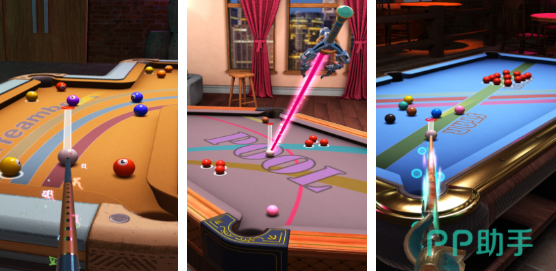 想从小白晋级为台球高手那一定要试试这款神作,本作具备超前的好友对战功能互动性更强,也可以自定义切换球桌的样式给人提供新鲜感,真人对战跟AI对练等打台球机制能快速提升技巧,整体的碰撞效果和台球PK规则跟真正台球比赛如出一辙,如果你也是台球方面的专家不妨试试这款联机PK作品。
