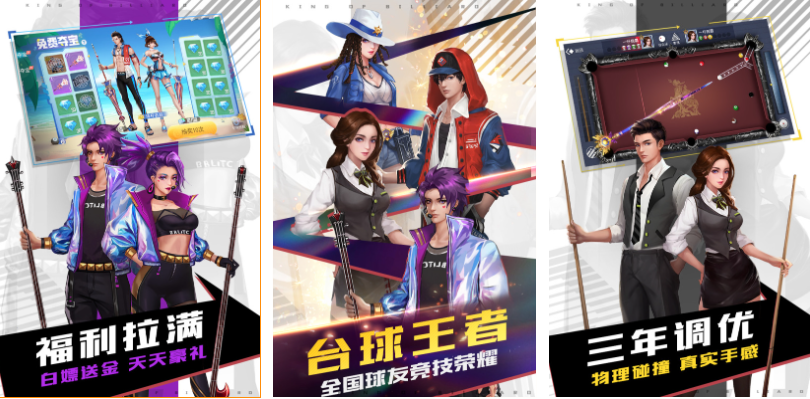 台球王者是具备3D写实风格的真人对战类台球游戏,拉满的福利和不俗的视听效果都为本作润色不少,闯关模式和斯诺克PK等大量玩法齐备,出色的场景刻画和物理碰撞效果也是亮点,超强引擎也为朋友们一比一还原了打台球的手感,优化的控制体系不会让台球爱好者失望,轻松好玩的PK设定也增加了这款台球游戏的魅力。