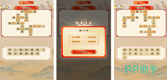 以源远流长的成语文化作为主要核心,这里呈现出来的关卡内容特别丰富,在每个关卡中只要将所有的成语全部猜出之后,就能完成挑战,每个关卡中所呈现出来的挑战题目,是完全不同的,比如在一个完整的成语当中会缺失1~2个字,玩家要从下方单个字体当中寻找到正确的成语。