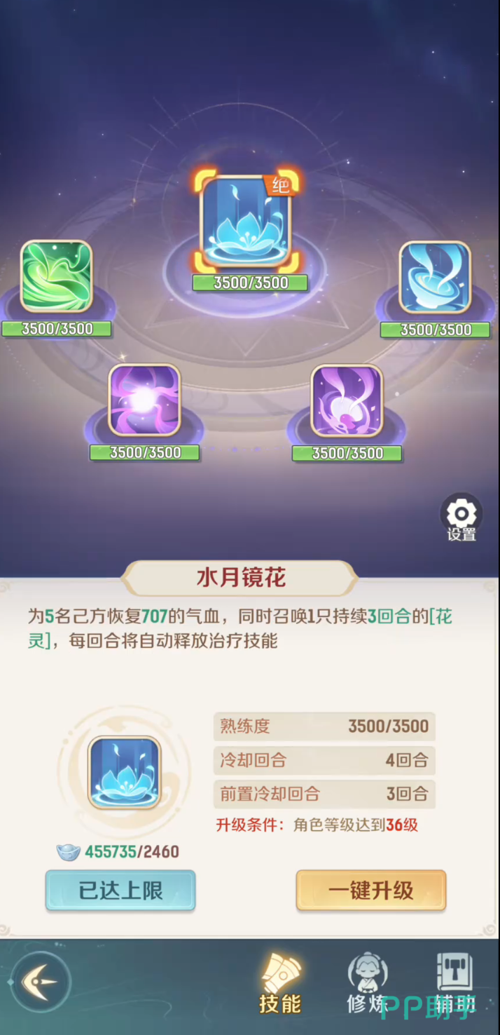 小阎王拥有超多核心技能,他的一技能是吸星大法,使用这个技能后可以给身边的五位角色进行治疗,并且对敌方造成打出一定的法术伤害。小阎王的二技能为血海深仇,这个技能效果是给身边的敌人造成法术攻击,并且如果目标小于30%的残血就有可能打出10%的暴击。小阎王三技能为倩女幽魂,这个技能效果能够造成敌方的防御和防控能力的下降,并且还具有一定的法术伤害值。小阎王的四技能是孟婆汤,这个技能主要是对敌人产生法术伤害,并且具有1/4的概率获得遗忘状态从而进行控制效果。最后一个技能是水月镜花,核心的技能效果是对队友血条进行25%的治疗与恢复,而且能够获得一技能的强化以及自身回血和定魂。