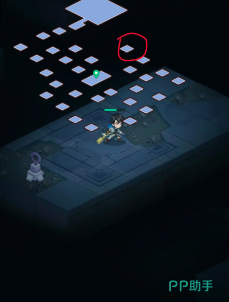 我们先来对地图模式进行大致了解,西沙海底墓穴地图,大致分为7个部分,耳室在整个地图的北侧方向上,而玩家想要成功进入北侧的耳室,需要先抵达回廊处,在回廊处有一个暗门,阿门的具体位置位于(47,41),在这个位置上,玩家触发锁钩用具,将其进行抛掷就可以快速出方案门,成功抵达耳室部位(37,41)。