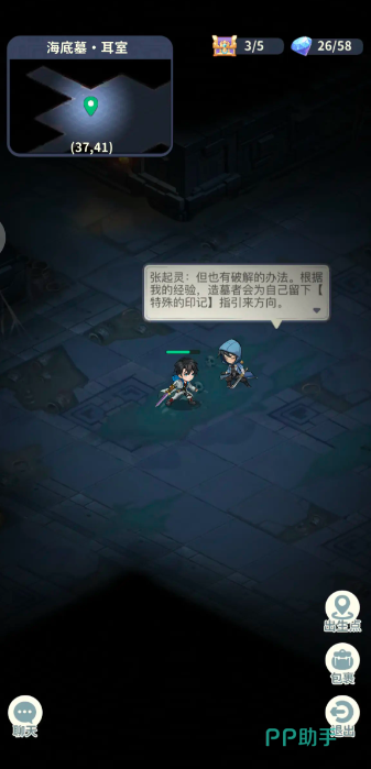 不过还有一部分小伙伴们发现无法进入其中,此时玩家会看到地上有一串脚印,大体是在(37,41)附近,可以多在其周边转一转,跟着脚印就可以抵达耳室内部,(一旦发现脚印标记,“张起灵”也会为大家进行提示)。